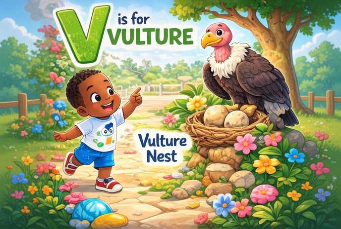 V is for Vulture – Leia & Dreim Learning Adventure 🦊✨