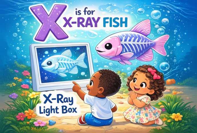 “X is for Xray-fish” is a short, playful learning clip that introduces your child to the letter F through fun visuals, sound, and repetition.